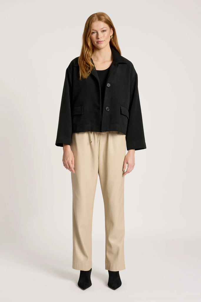 A boxy, cropped jacket designed with modern appeal. Crafted from a wool-look poly blend and fully lined for comfort, this style features clean tailoring and tonal buttons. An easy layering piece that elevates everyday outfits.