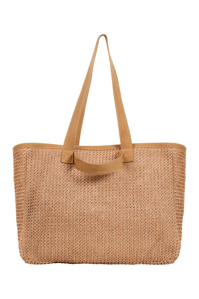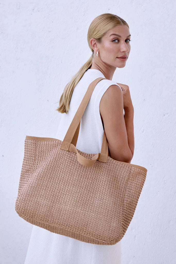 A spacious, fully lined beach bag designed for carefree summer days. Features both long and short comfortable straps, a woven texture, and an internal zip pocket to keep essentials secure. The perfect piece to elevate your beachside styling.