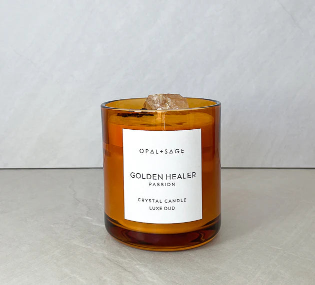 GOLDEN HEALER QUARTZ CRYSTAL CANDLE